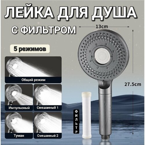 Лейка для душа с фильтром Shower Head Big Gray, большая, серая, 5 режимов