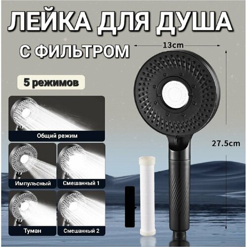 Лейка для душа с фильтром Shower Head Big Black, большая, черная, 5 режимов