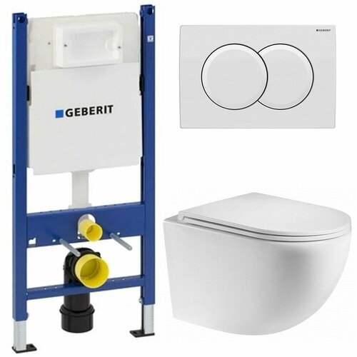 Инсталляция Geberit 111.154.11.1 + кнопка смыва Delta01 115.107.11.1 + унитаз Teymi Lina S T40102 безободковый с сиденьем