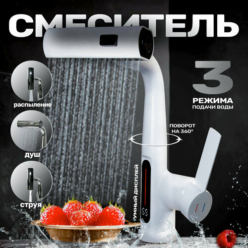 Смеситель для кухни с гибким изливом Senat White, выдвижной кран для раковины с дисплеем