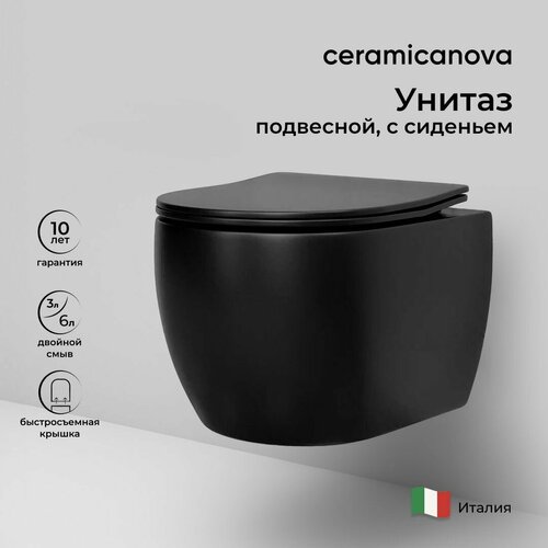 Подвесной унитаз Ceramicanova Balearica CN6000MH с микролифтом, Антрацит Матовый