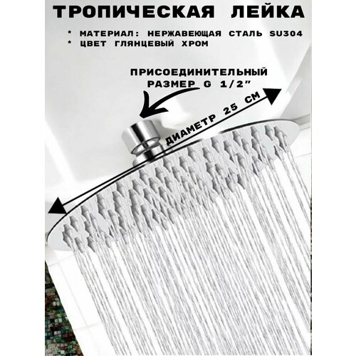 Лейка тропическая для душа OUTE потолочная круг 25x25 см глянцевый хром, с шарниром для изменения угла наклона.