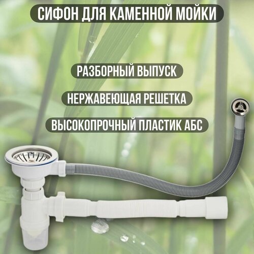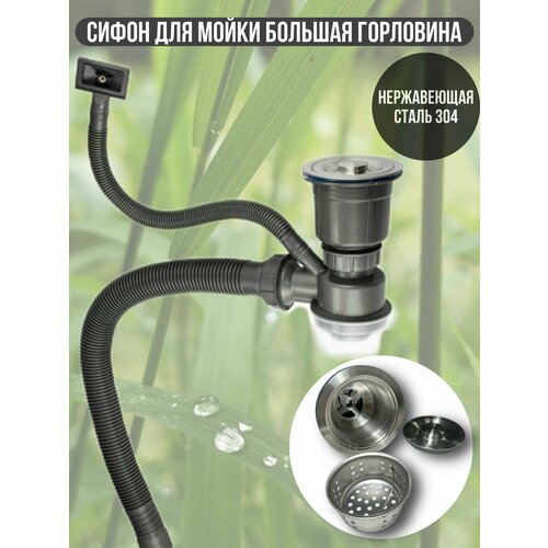 Сифон для кухонных моек с диаметром сливного отверстия 90 мм, бутылочного типа. С разборным выпуском и нержавеющей решеткой с гофро...