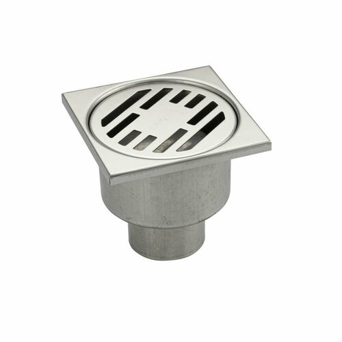 Трап душевой вертикальный из нержавеющей стали 100х100 с гидрозатвором , Хром, санакс (00020)