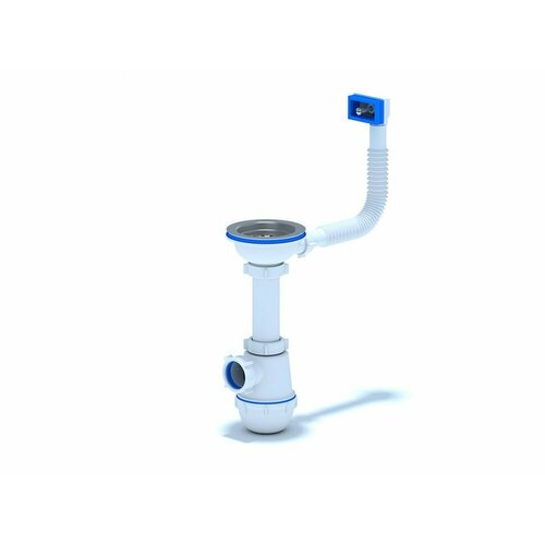 Сифон для кухонной мойки АНИ D1042SP 3.1/2"*40 с круглым переливом и отводом для стиральной машины