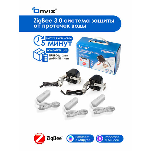 Умная универсальная система защиты от протечек воды Onviz ZigBee, G1/2, G3/4, с беспроводными датчиками, Алиса, Маруся