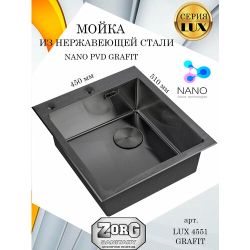 Мойка кухонная ZorG серия LUX 4551 GRAFIT графит, смещенный выпуск, глубина 20 см, премиум
