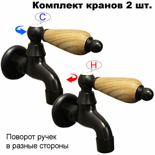 Комплект кранов для бани с деревянной ручкой FKS-47DS-2 черный