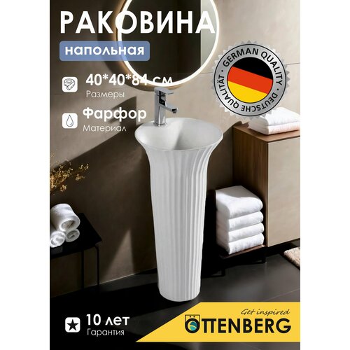 Раковина напольная в ванную белая Ottenberg, 84см