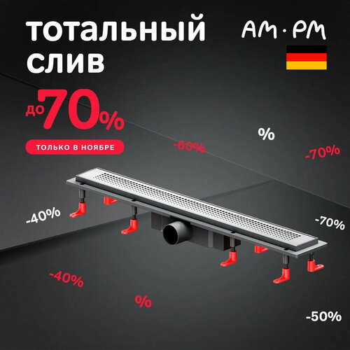 Трап для душа AM.PM PrimeFlow W02SC-P11-070-01SB 70 см, матовая сталь, линейный душевой трап 45 л/мин, универсальный затвор Cut Gradient, решетка с фильтром, Германия