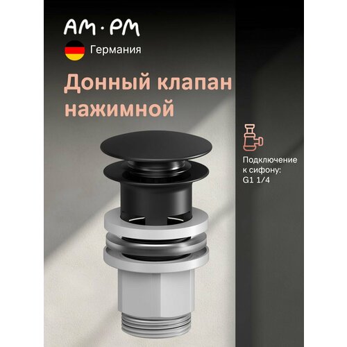 Донный клапан нажимной AM.PM универсальный, с регулировкой по высоте, черный