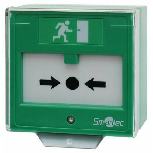 Устройство Smartec ST-ER125D-GN разблокировки двери с восстанавливаемой вставкой, защитная прозрачная крышка, 2 группы контактов НР/НЗ, усилие активац
