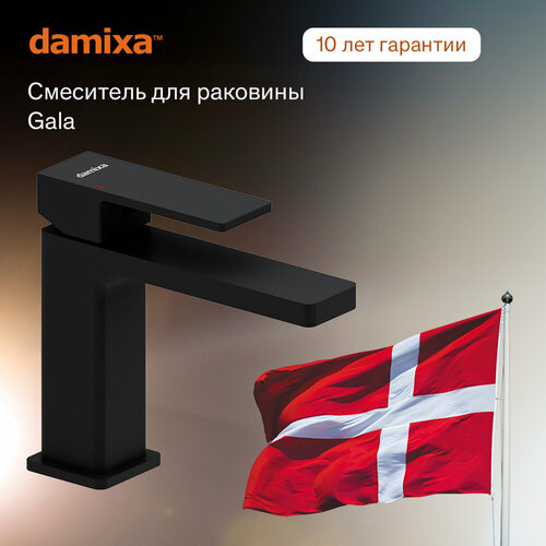 Смеситель для раковины Damixa Gala 530210300 черный, инновационное PVD-покрытие, керамический картридж Light Flow, аэратор EcoSave, Дания