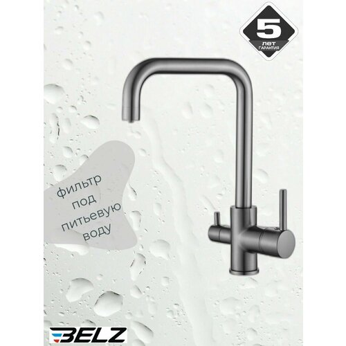 Смеситель для кухни с подключением фильтра питьевой воды, высокий излив, латунь BELZ, воронёный, B76802-3