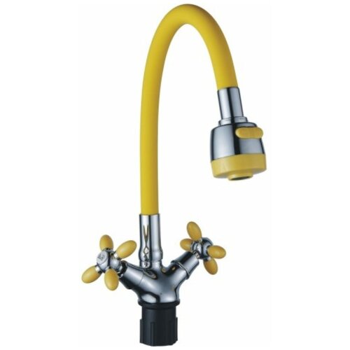 Cмеситель для кухни "Эверест" B58-336, двухвентильный, гибкий излив, на гайке, хром