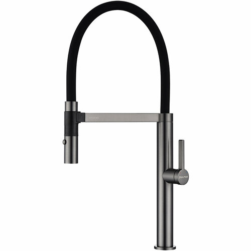 Кухонный смеситель с гибким выдвижным изливом Paulmark SERPENTINE, подключение к системе фильтрации воды по отдельному каналу, Г-образный, латунь, на мойку / столешницу, cерый дым, Se213222-GRS