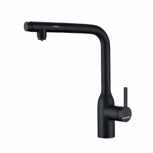 Смеситель для кухни с выдвижным изливом Paulmark SERPENTINE черный металлик, с подключением фильтра питьевой воды, Se213222-418