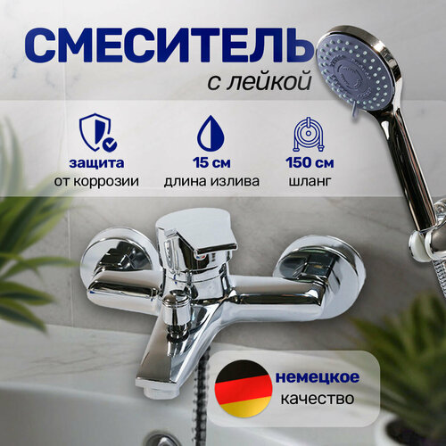 Смеситель для ванной с лейкой Level, кран для ванны настенный