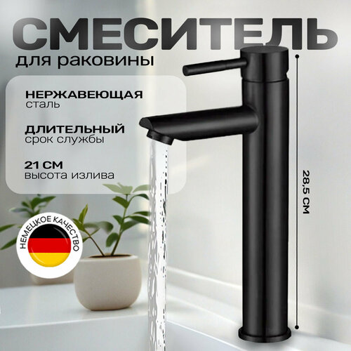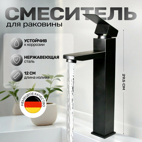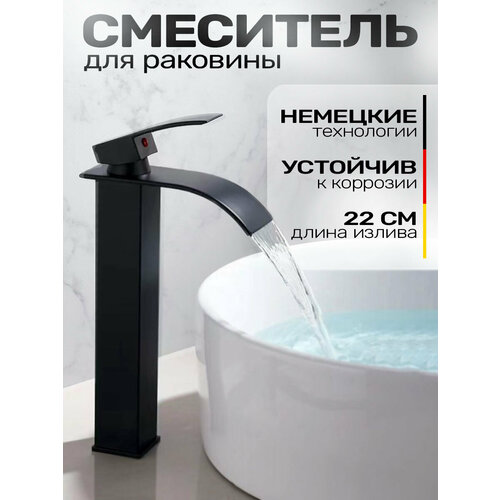 Смеситель для раковины Seven Max Black с каскадным высоким изливом, кран для ванной из нержавеющей стали