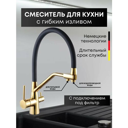 Смеситель для кухни и раковины Fenix Gold золотой c гибким изливом и подключением фильтра