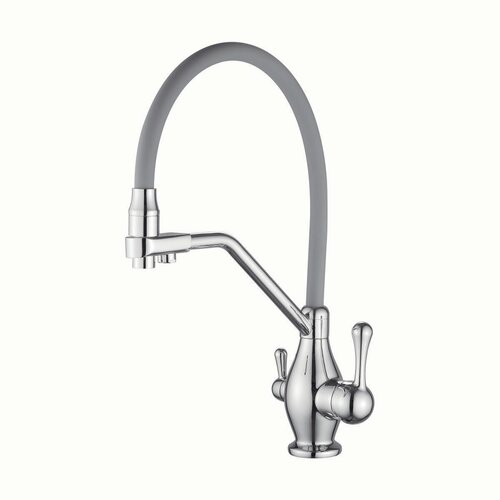 Смеситель Rose R858 для кухонной мойки с гибким изливом и подключением к фильтру с питьевой водой, хром, серый