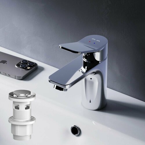 Смеситель для раковины AM.PM Brava с донным клапаном, керамический картридж Soft Motion, высококачественная латунь, гарантия 10 лет