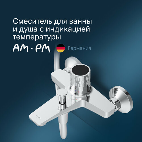 Смеситель для ванны AM.PM Gem с индикацией температуры, монолитный излив 179 мм, керамический картридж