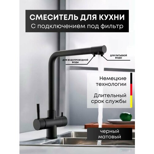 Смеситель для кухни с подключением под фильтр Aqua черный матовый (латунь, нержавеющая сталь)