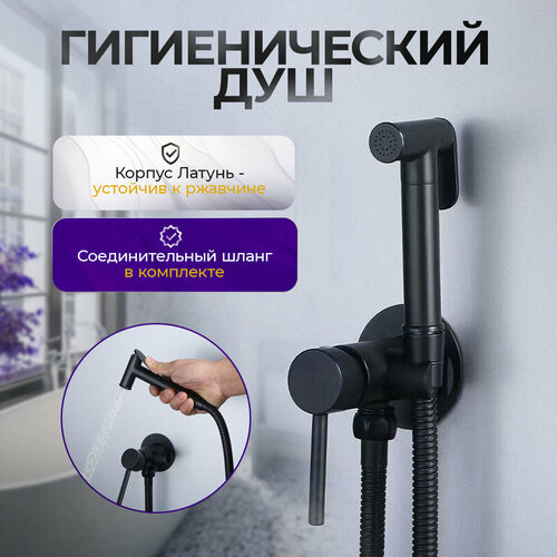 Смеситель с гигиеническим душем для горячей и холодной воды Reven Black матовый черный