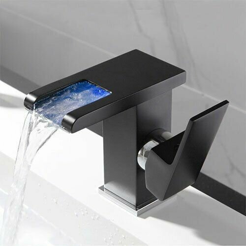 Смеситель для раковины с каскадным изливом и подсветкой Bono Mini Black, кран для ванной из нержавеющей стали