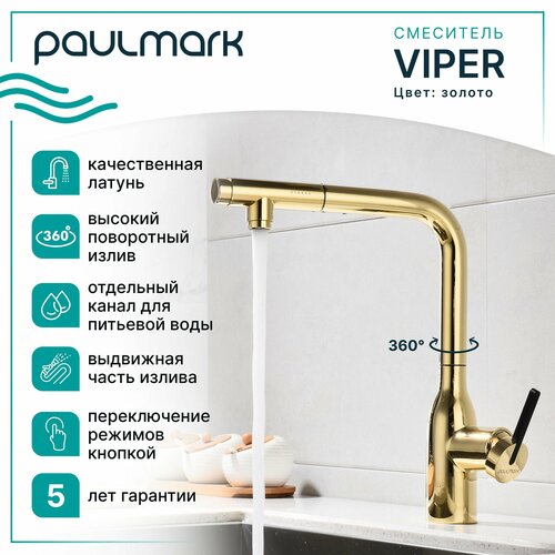 Смеситель для кухни Paulmark HONNER, Ho212018-G, Золото
