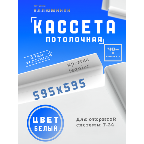 Кассета подвесного потолка 40 шт. (в упаковке) размер 595x595 мм, Алюминий, белая, T24. Кромка Tegular
