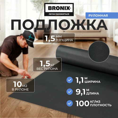 Подложка BRONIX EVA Black толщина - 1,5 мм, 10 м2 в рулоне. Под SPC плитку, Кварцвинил, LVT, WPC и ламинат.