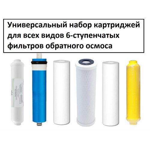 Универсальный набор картриджей 10SL полный комплект на фильтр обратного осмоса 6 шт. с минерализацией и мембраной 50G