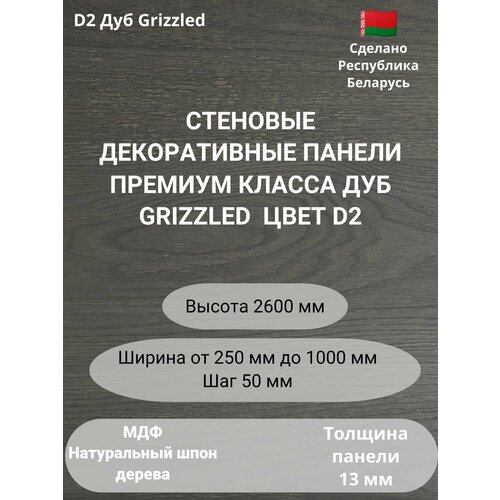Стеновые панели натуральный шпон дерева. Цвет Дуб Grizzled D2. Высота 2600. Ширина, мм 900