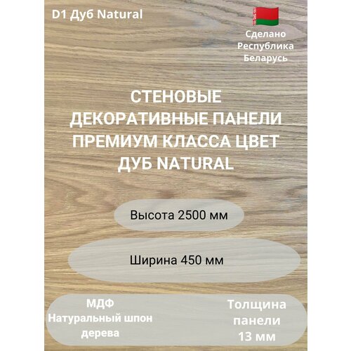 Стеновые панели натуральный шпон дерева. Цвет Дуб Natural D1. Высота 2500 мм. Ширина, мм 450