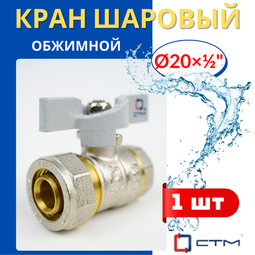 Кран шаровой СТМ для воды с наружной резьбой 20 x 1/2', гайка обжим, бабочка