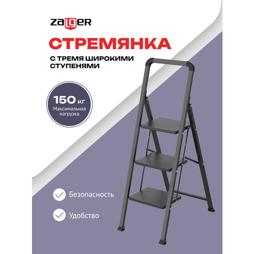 Стремянка стальная Zalger, 3 широкие ступени, арт. 311-3