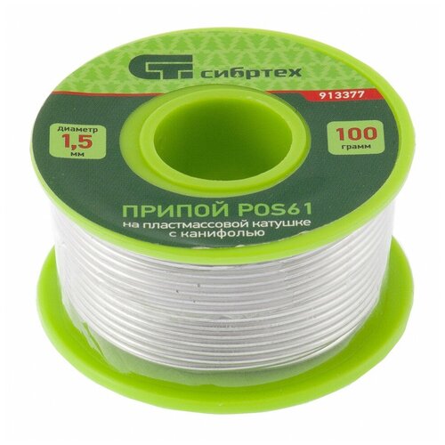 Припой с канифолью, D 1.5 мм, 100 г, POS61, на пластмассовой катушке Сибртех