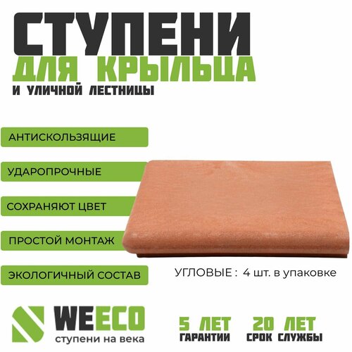 Ступень плитка на крыльцо угловая Флоренция для лестниц WeEco терракот, 4 шт.