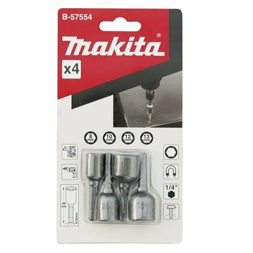 Набор магнитных торцовых головок MAKITA С-form 4 шт. 1/4" 8,10,12,13 мм. (B-57554)