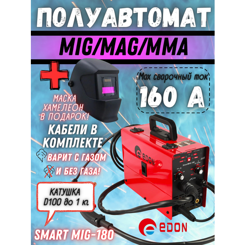 Сварочный аппарат инверторного типа Edon Smart MIG-180, MMA, MIG/MAG+маска в подарок