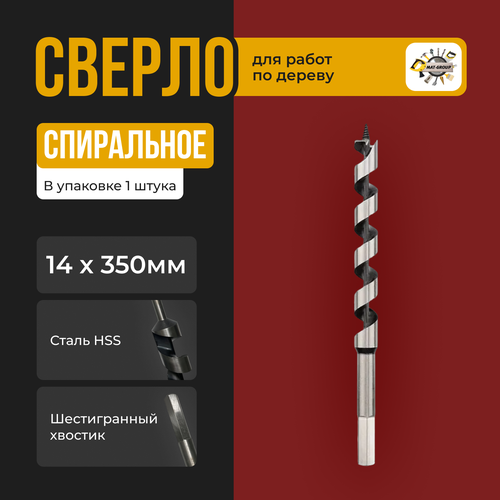 Сверло по дереву спиральное 14х350 мм с шестигранным хвостовиком / Сверло винтовое (левиса) 14х350мм