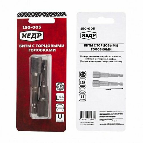 Биты торцевыми головками 8*65мм.(набор 2 шт.) Кедр