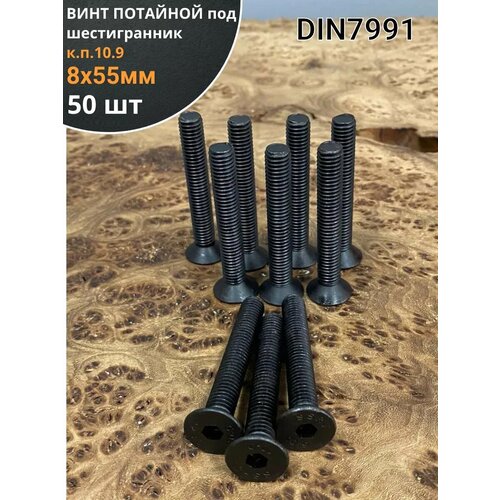Винт потайной под шестигранник 8х55 DIN7991 к. п.10.9, 50 шт.