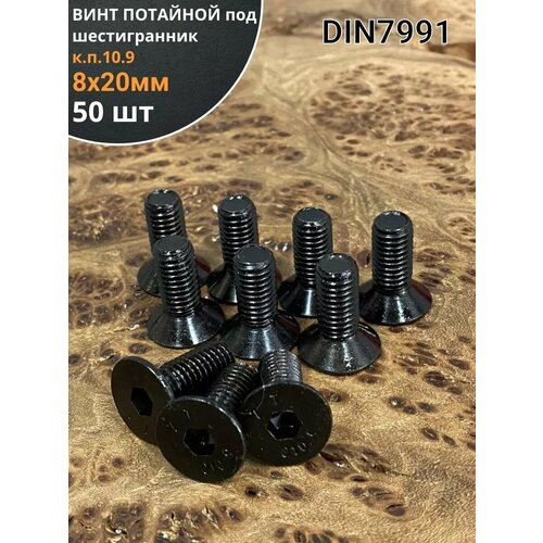 Винт потайной под шестигранник 8х20 DIN7991 к. п.10.9, 50 шт.