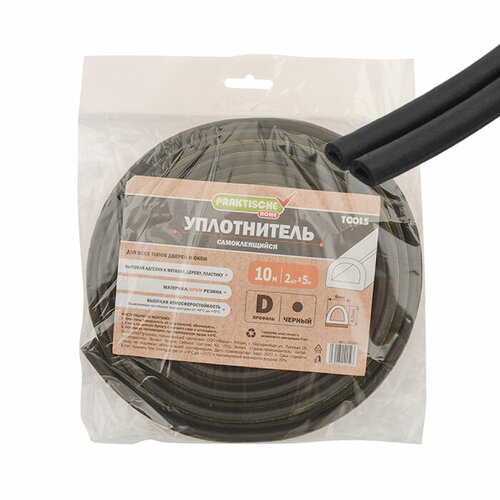 Уплотнитель самоклеящийся `PRAKTISCHE HOME` 9х6,5мм D-10 м (чер)