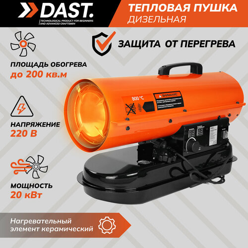 Дизельная тепловая пушка DAST DDTP-10-20S ( 20000 Вт, 500 м3/час, 1.35 л/час, термостат )