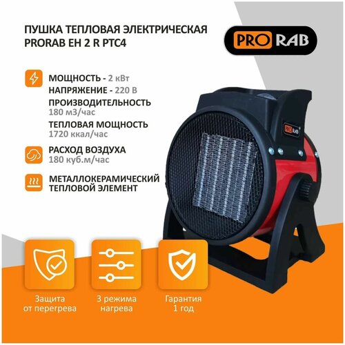 Тепловентилятор электрический прораб EH 3 RA PTC2 (3кВт, 2 режима нагрева (1,5/3 кВт), керамический элемент) черный