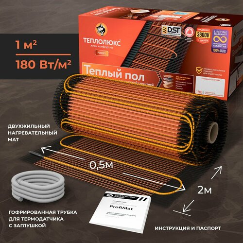 Теплый пол. Мат нагревательный Теплолюкс ProfiMat 180 Вт/1,0 кв. м.